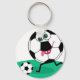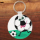 Cute cartoon soccer ball playing football and kicking a smaller ball. Image available on various gifts and products. Keychains. Keyrings.
