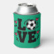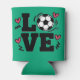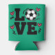 A cute soccer can cooler for girls and women, with LOVE in bold text and a soccer ball graphic in place of the O, surrounded by hearts. Makes a great gift for any soccer player or fan, especially for girls and women.