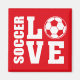 Brighten up your fridge with this Red SOCCER LOVE fridge magnet. Red is the colour of love and If you love Soccer then you will love this Soccer fridge magnet! This Soccer magnet has a Love theme with the words SOCCER and LOVE in large bold white letters. A Soccer ball serves for the letter O giving this design a real Soccer theme. This Soccer magnet makes a fun gift for Soccer players of all ages! More fun Soccer gifts and merchandise available in the Stand Up and Cheer store!