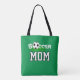 Cool Soccer Mom Tote Bag featuring soccer / football ball and easily editable "MoM" text. Change background color to your favorite. Add you kids name / be proud