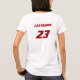 Customise this soccer design for yourself or for your entire team. Add a group name and individual numbers, change colour of text and style of shirt also.
