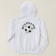 This cosy light grey hoodie hooded sweatshirt with black letters is perfect for a soccer player, club, or team. Front includes 3 lines of personalised text plus 3 soccer balls. Back has personalised player name and large soccer ball. All text and soccer ball graphics can be modified, replaced, or deleted. Hoodie is printed on both front and back, light grey with black typography. Unisex sizing; matching leggings. Good quality; thick and warm. Easy to transfer to another product, if desired. All Rights Reserved © 2019 Alan & Marcia Socolik.