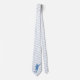 Blue and white check background with a soccer player kicking a ball at the bottom of the tie.