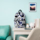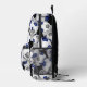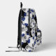 This cool soccer backpack features realistic, varied size blue, grey and white soccer balls turned every which way in a 3D-look pattern on a black background - customise with the soccer player's monogram - by katz_d_zynes