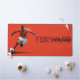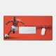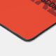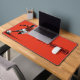 A skilled soccer player in a red jersey is captured in mid-action, dribbling a soccer ball against a vibrant red background. This illustration showcases the energy and excitement of the sport. You can customize both texts in this design. This is a great desk mat for soccer fans.