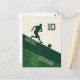 This highly customisable postcard features a silhouette of a soccer player passing the ball. The design consists of two tones of green representing the soccer field pitch, and the beige colour. You can customise the jersey number, the player name, and the player position.