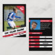 On the front, personalise the essentials: team name, player's full name, position, jersey number, and showcase the player's image, capturing their charisma on the field. Flip it over, and uncover the stats that define soccer greatness: age, height, position, shooting style. But that's not all – delve into the captivating player bio that adds depth to every card. Plus, rediscover the player's image once more, bringing the excitement of the game to life.