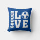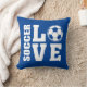 Blue SOCCER LOVE Soccer players cushion. Soccer players will love this comfy Soccer cushion! This Soccer cushion has a Love theme with the words SOCCER and LOVE in bold white letters. A soccer ball serves for the letter O giving this design a real soccer theme. On the back of this cushion is the same Soccer Love design but printed as a fantastic all over patterned print. This comfy cushion looks great on any chair and will show everyone you have a ardent love for Soccer. More fun soccer themed gifts and merchandize available in the STAND UP AND CHEER store!