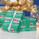 Soccer playing polar bear cartoon kid's Christmas Wrapping Paper. Fun Holiday design for friends and family. Personalized gift wrap for parents, children and babies. Funny joyful sports illustration with for the winter season. Add your own name and custom seasons greetings like Merry Christmas or Happy Holidays. Customizable background color.