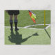 Soccer referee holding flag. postcard