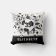 This cool girl's soccer throw pillow features an "explosion" of black and white soccer balls in varying sizes and grey and black star shapes, upon which you can personalise her jersey number - the black star has a tiny pattern of white polka dots - customise the athlete's name on a black colour strip at the bottom edge of the pillow - katz_d_zynes