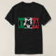 Soccer shirt with Italia in vintage distressed font, with deconstructed soccer ball and Italian flag in background.