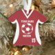 Red soccer jersey with photo. Personalise with your player's photo, name, team and date.