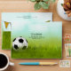 This fresh and energetic envelope design captures the spirit of the game with a vibrant soccer-inspired theme. Featuring a classic black-and-white soccer ball resting on lush green grass, set against a soft gradient sky, the design instantly brings to mind the excitement of a real soccer field. The natural green tones combined with the iconic ball create a visually appealing and sporty composition that resonates with soccer fans and athletes alike.
