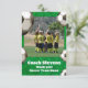 Express your gratitude and give thanks to your favourite coach with this cute and sporty custom made and personalised photo thank you card. Featuring a green grass background, random soccer balls, a team photo and your coach, team and teammates names.