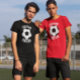 Black and White Soccer Ball Team Name, Player Name & Jersey Number Men's T-shirts: Totally customisable black and white soccer t-shirts, with text boxes where you can type in your own team name on the front, and player name and jersey number on the back. All text boxes (such as player names and jersey numbers) can also be left blank if you prefer plain soccer t-shirt.