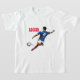 The t-shirt feels and looks great quality, a good thick cotton. It will be a little big for my son, but that means he will be able to wear it and not out grow it too soon. The print was as described on the order when personalised. True size, shape and colour T-shirt- thanks.