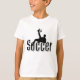 Pictured on top of the word Soccer a soccer player kicks the soccer ball