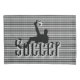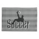 Pictured on top of the word Soccer a soccer player kicks the soccer ball