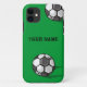 iPhone 5 cases for soccer fans. 2 black and white soccer ball designs on a green background are featured on these iPhone cases that can be personalised by you. Edit ALL text fields to make your iPhone 5 cases unique.