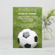 A soccer ball on green grass is featured on this sports themed Bar Mitzvah invitation.