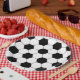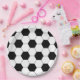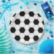 A soccer or football pattern on paper plates. Great for soccer-themed parties such as birthdays, get-togethers and so on.