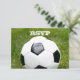 A soccer ball on green grass is featured on this sports themed RSVP card.