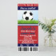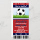 This is a fun birthday invitation for your child's birthday party. It is designed to look like a ticket for a soccer event. Just type in the text to add your own information on the front and back of the card. There is space on the back of the card to add any extra information that you might want to add about the party. Click on the customise button if you want to customise the invitation. You can then change the font and colour if you so choose.