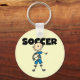 Awesome soccer design T-shirts, cards, stickers, mugs, and other soccer apparel and gift items featuring a stick figure boy soccer player with a soccer ball and black text that reads "SOCCER"!