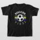The t-shirt feels and looks great quality, a good thick cotton. It will be a little big for my son, but that means he will be able to wear it and not out grow it too soon. The print was as described on the order when personalised. True size, shape and colour T-shirt- thanks.