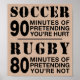 Soccer, 90 minutes of pretending you're hurt. Rugby, 80 minutes of pretending you're not.