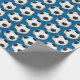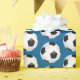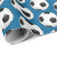 Wrapping paper shown with a sports soccer ball print on a blue background. Customise this item or buy as is.