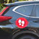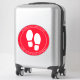 This floor marker features white footprints on a red background with custom text to help your customers and employees remember to social distance and maintain safety in your workplace. Perfect for any office or business.