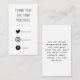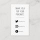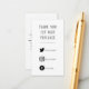 A crisp black on white insert card with playful, easy to read typography says "Thank you for your purchase", adding a bold, modern appreciation touch to small business and Etsy orders. The front includes clear white social media icons with space for handles to encourage follows, tags, and reviews. Icon sets can be swapped on request to match preferred platforms and brand style. The reverse provides generous space for shop details, website, email, phone, or a short care note, and the minimalist layout keeps everything legible at a glance for streamlined packing and customer engagement.