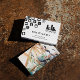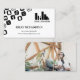Cool social media themed business card with lots of social media icons in black personalised with your logo on the cover and a photo of you or your work on the back. Add your name, social media handle, and website. Social media business card personalised with your logo and photo with a smattering of black and white social media icons.