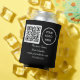 Black and white business logo, can cooler. Elegant, minimal, qr code, social media, promotional can cooler. Personalise with your details.