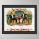 Vintage design cigar advertisement. Scene depicted is of two gentlemen dressed in tuxedos, seated at a table in a cigar lounge with the open veranda in the background.