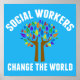 Social Workers Change the World inspirational poster in beautiful blue. A cute motivational social work quote written around a beautiful tree of rainbow leaves.