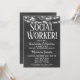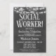A fun black and white chalkboard social work graduation party invitation with glowing lights at the top.