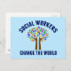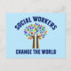Social Workers Change the World inspirational card. A cute motivational social work quote written around a beautiful tree of rainbow leaves on a pretty postcard.