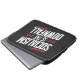 The sleeve is made of nice feeling material and seems very durable. I'm not sure how easy it'll be to clean, but the construction seems sound and the fabric is quick thick. I also like the double zipper. The printing is lovely and appears durable. The white on black contrast is nice, and the design very elegant.