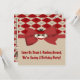 Cute boy sock monkey on tan and red gingham chequerboard with a big red bow and ribbon. Perfect for that silly birthday boy!