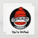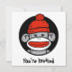 Whether you are having a child's birthday party or a fun adult get together; send this sock monkey card / invitation and everyone will show up. This funny, happy, retro, graphic design of a handmade sock monkey will bring a smile to anyone who sees it. You can customise and personalise with event info, name, address or quote. Great save the date card.