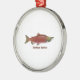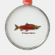 A sockeye or red salmon is depicted on this fishing ornament. Sockeyes are the most colourful Pacific salmon. During spawning runs, males turn crimson red, trimmed with olive green.