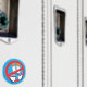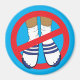 No socks with sandals allowed! Funny cruise ship stateroom door magnet with a pair of feet wearing socks and slider sandals and a no entry sign