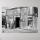 Old 1940s photo of living quarters, store, and juke joint for migratory laborers near Canal Point, Florida. African American children out front and advertising signs for soda pop and beer on the building. Photo taken in 1941 by photographer Marion Post Wolcott.