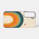 A simple rainbow arch in burnt orange and teal hues set against a cream background, delivering clean and calm retro vibes.