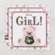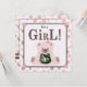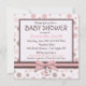 Sweet pink and tan polka dot print with 3D-look coordinating pink polka dot ribbon and novelty baby pacifier trimmings and a mummy bear with sonogram.