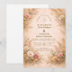 Inspired by rich autumn florals and romantic seasonal palettes, this wedding design features layered roses, dahlias, and soft foliage in warm rust, blush, and cream tones. The painterly floral border frames the layout beautifully, creating a refined yet inviting atmosphere that feels both classic and celebratory.