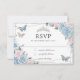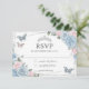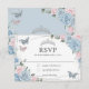 Soft Baby Blue Pink Floral Roses Quinceañera RSVP Card